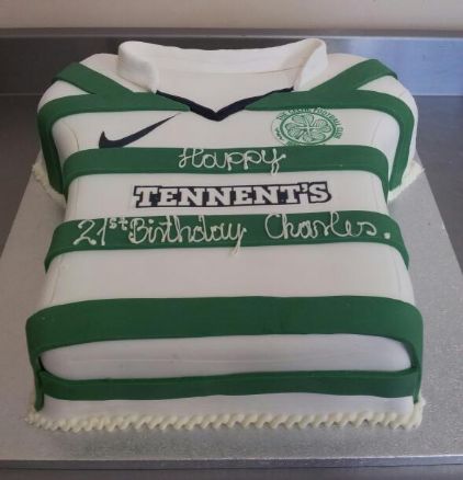 This is a Madeira sponge layered with buttercream and strawberry pie filling, finished in the shape and style of Celtic jersey. We can replicate most jerseys so contact us to see if we can do yours 01 8353409 / info@klcakes.ie
