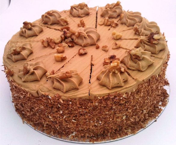 Coffee & Walnut Gateau Add to basket View basket Category Gateaux & Pavlovas This is unashamedly rich and luscious. Coffee and walnuts have a great affinity; so do coffee and creaminess; the cake is soaked in coffee syrup, it's also meltingly moist.10" Coffee & Walnut Gateaux