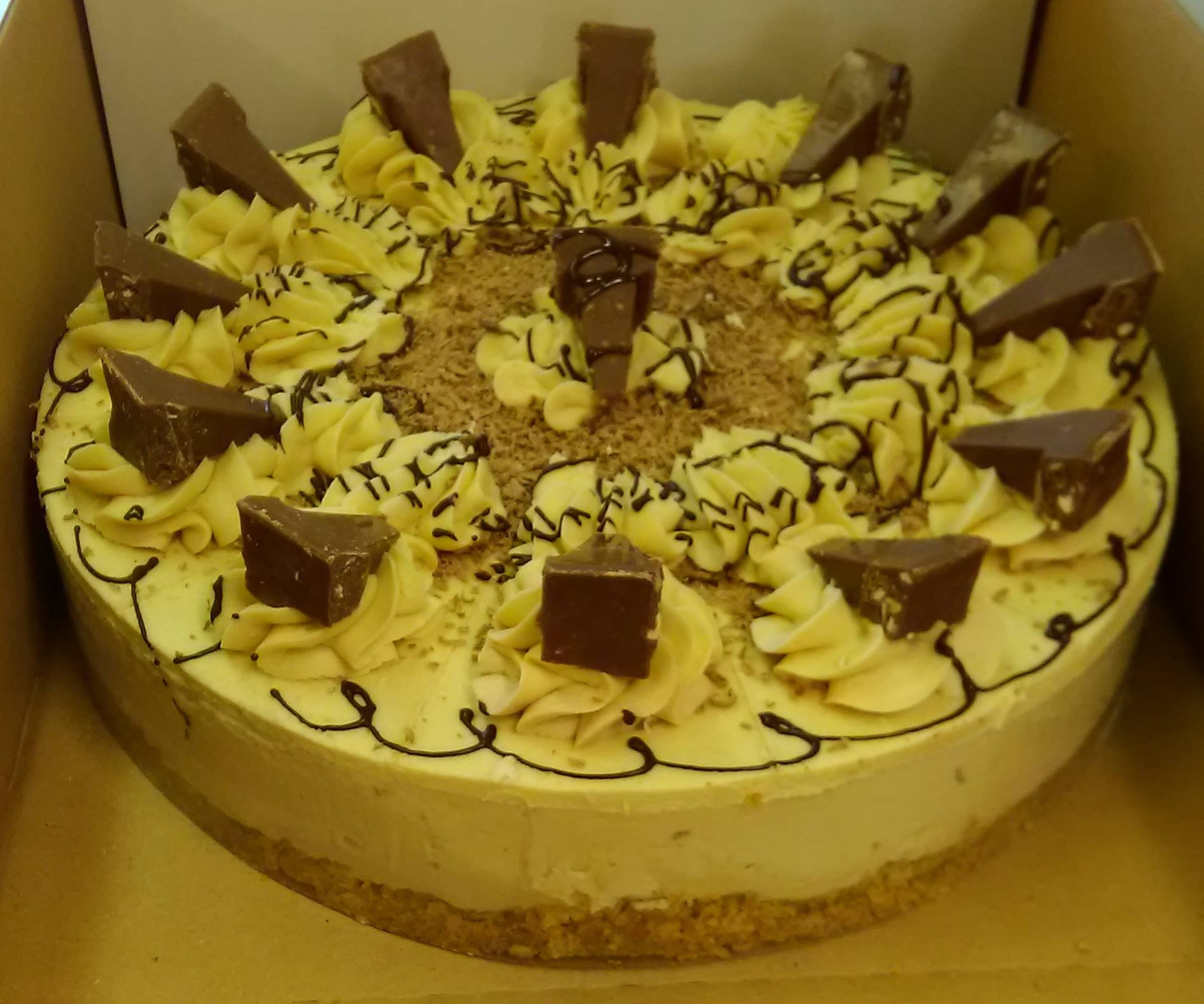Toblerone Cheesecake € 30.00 Add to basket View basket Category Cheesecakes A majestic toblerone flavoured cheesecake sprinled generously with chocolate goodness, sublime...............This is a 10" Cheessecake feeds 12 generous portions.